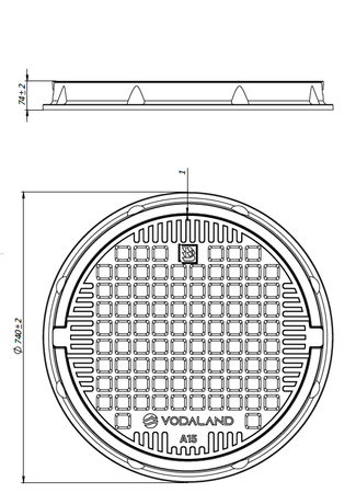 Okrągły właz kompozytowy klasy obciążenia A15 (do 1,5 tony), przeznaczony do stosowania w ruchu pieszym i rowerowym. Wykonany z tworzywa sztucznego wypełnionego piaskiem lub kwarcem. Charakteryzuje się uniwersalnym czarnym kolorem, całkowitą odpornością na korozję oraz niską wagą, co ułatwia montaż. Materiał kompozytowy eliminuje ryzyko kradzieży (antywandalizm). Średnica zewnętrzna to około 750 mm.